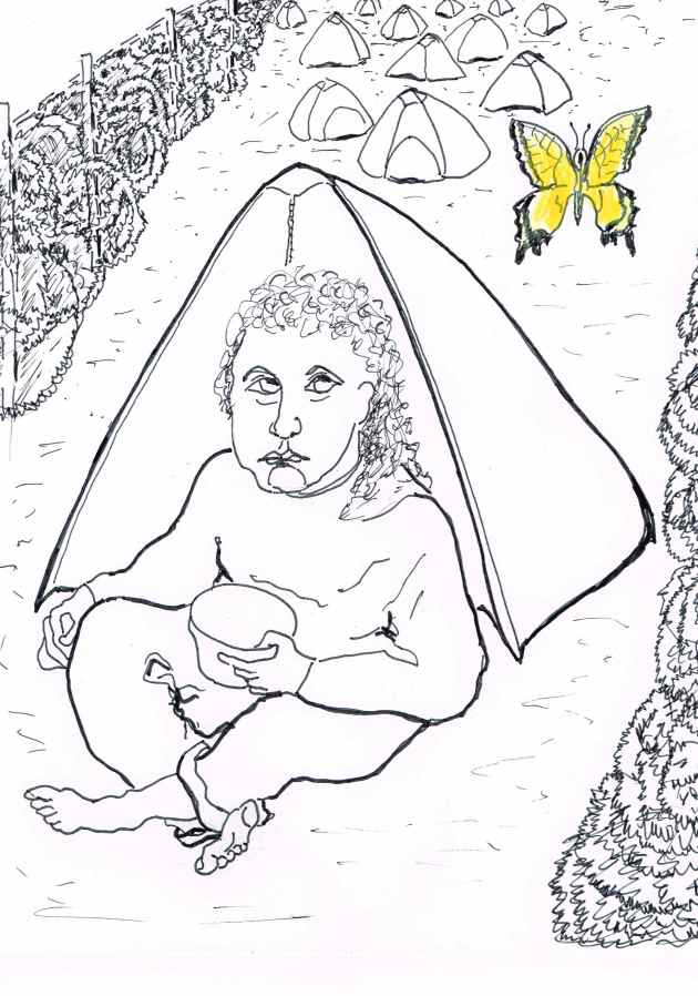 A Gross Nimby flutters by a Syrian child.