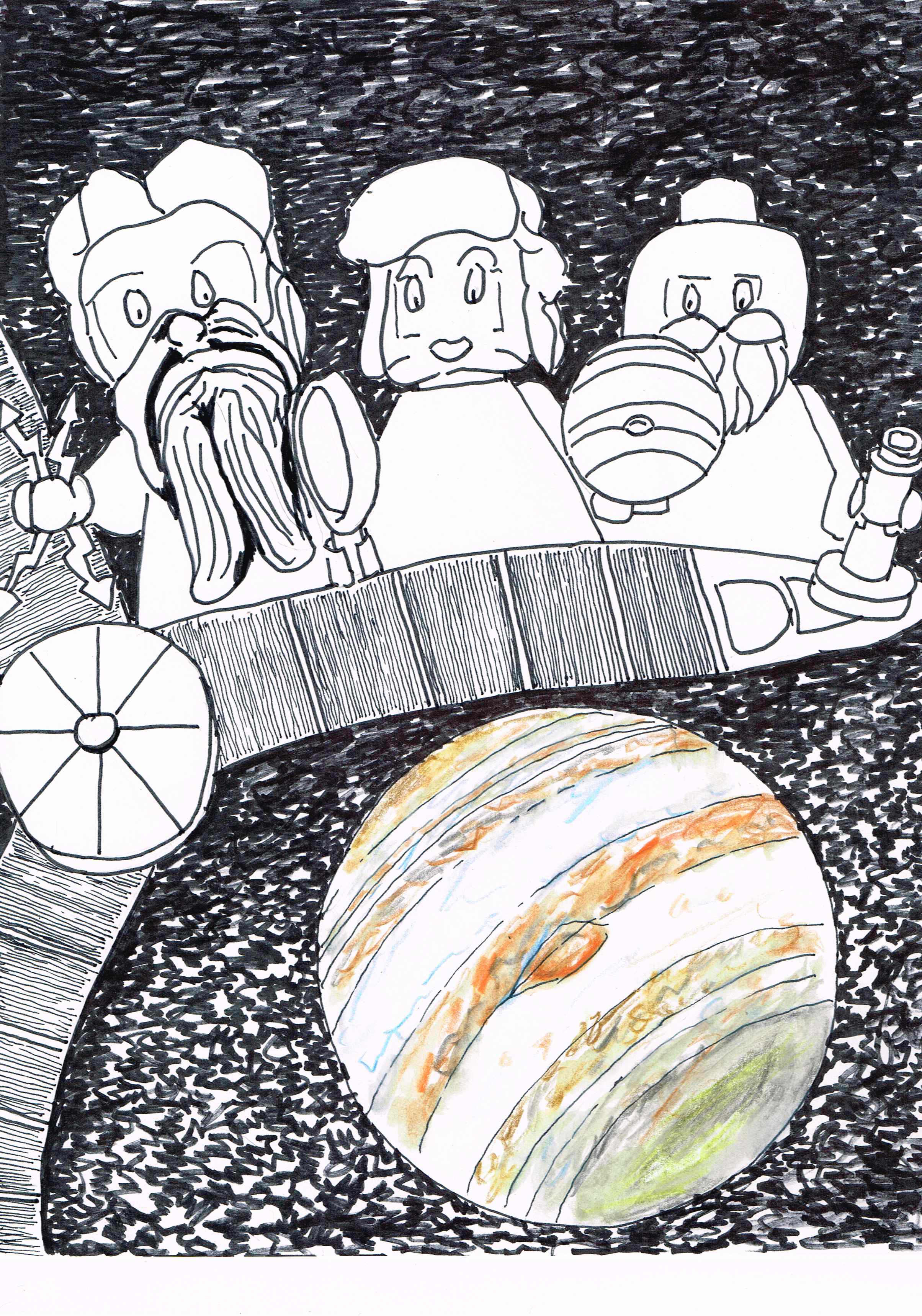Lego figurines of Jupiter,Juno and Galileo are added to the Jupiter probe payload as a fairly empty gesture towards space education.